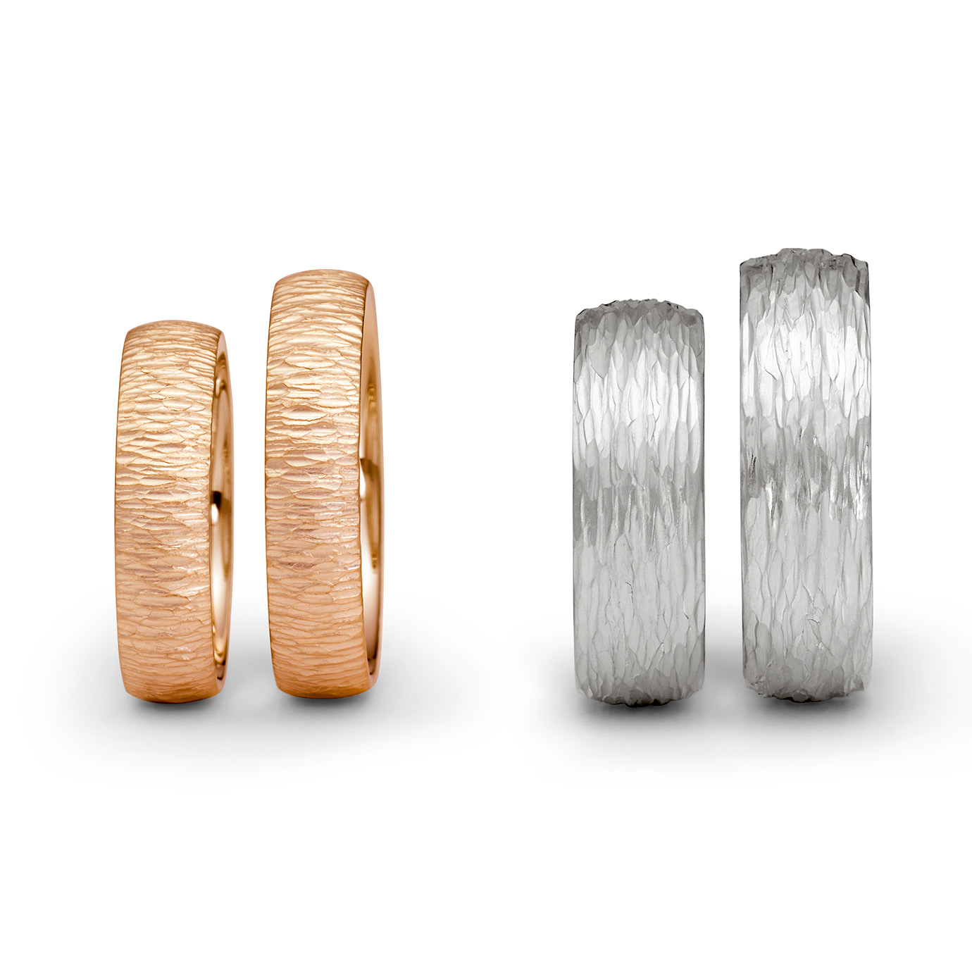 The goldsmith’s expertise gives the Niessing wedding rings Hammerblow Linea a fine texture that is full of shimmering life. The rings in platinum seem to shine like the moon, and in the warmer gold shades they look like desert dunes or like the swaying sea in sundown… The work of hands formed this ring. The goldsmith uses one of the oldest techniques of his craft. With a fine hammer, he places the ornamental lines. Lengthwise? Crosswise? In motion? Always accomplished!